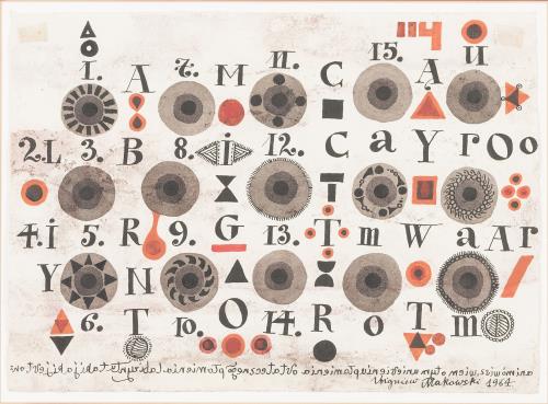 Lot 281. Zbignew Makowski (1930, PL), “Sans titre” (lettres et formes géométriques), 1964, s.b.d.