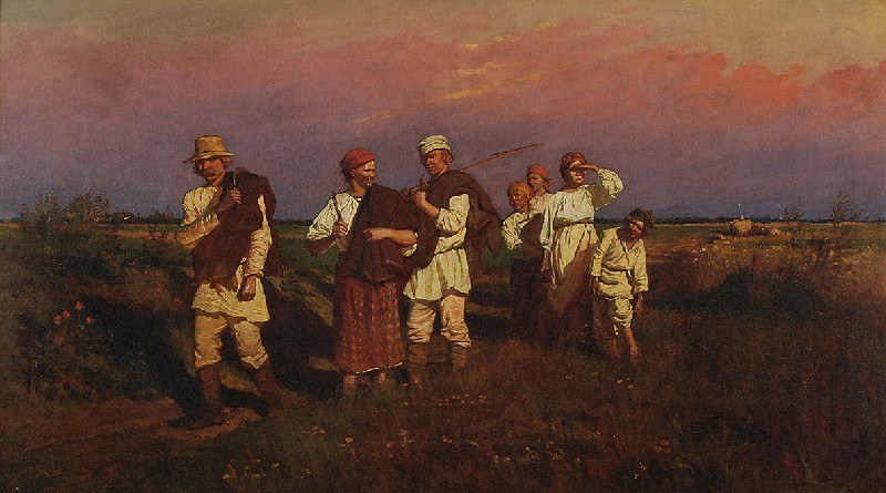 Był to malarz I illustrator o znakomitym rysunku specjalizujacy się w portretach i pracach o charakterze rodzajowym, szczególnie wiejskim. Na rynku polskim jego prace są bardzo rzadkie a na zagraniczym pierwszy raz widzę. Scenka rodzajowa Waiting for the Ferry przedstawia, prawdopodobnie niedzielne, po zakończonej mszy w widocznym w oddali kościele, spotkanie u przewozu przez rzekę ‘pańskiego’ powozu z grupą odświętnie ubranych chlopów. Praca ta ma znakomitą ilustrowaną w katalogu nowojorskim proweniencję z wystawy w Metropolitan Art w Nowym Jorku. Wątpię jednak by udało sie tę pracę sprzedać w podanych widełkach cen. Inna praca Konopackiego, Powrót żniwiarzy, z tego samego paryskiego okresu (1880) była dwa razy wystawiana w Rempexie w Warszawie (2018, 1019) z wyceną 70,000 – 100,000 złotych, dwa razy spadła i jest do nabycia za 40,000 złotych. W moich oczach, jest to lepsza kompozycja od tej sprzedawanej w UK. Konopacki to zapomniany malarz, wiele jego prac uległo zniszczeniu w czasie wojny, no i moda sie zmieniła. Być może znajdą się zainteresowani tą pracą jeśli uda się ją taniej kupić od tych widełek estymacyjnych. Nie znamy jednak reserve price.