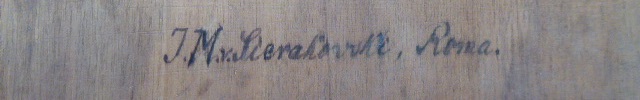 Olej przedstawiający pejzaż z Rzymu opisany jest przez niemiecki dom aukcyjny jako praca pędzla Józefa Sierakowskiego (1865-1831). Jak do tej pory nie jest znany żaden olej namalowany przez tego ciekawego polityka, dyplomatę, historyka, rysownika, sztycharza, etc. Co prawda, Galeria Żak w Warszawie ma obecnie na sprzedaż Włoską prządkę z sygnaturą Sierakowski namalował lecz jest to również olej, którego nie da się porównać do innych olejów Sierakowskiego. Dodatkowo, olej z Galerii Żak jest sygnowany (tak mi się wydaje) czerwną farbą co zawsze budzi u mnie ostrożność (proszę samemu poszukać w sieci dlaczego czerwona sygnatura to tzw. red flag). Nie ma materiału porównawczego. W sumie jeden olej w Polsce, drugi olej w Niemczech i teraz pytanie który i czy są one pędzla Józefa Sierakowskiego. W zbiorachh Muzeum Narodowego w Warszawie jest kilka sztychów Sierakowskiego, chyba jedna akwarela i żadna praca nie jest sygnowana.