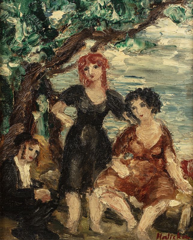Lot 152. Alice HALICKA (Cracovie 1895 – Paris 1975). Jeune garçon et deux femmes. Huile sur toile d’origine, 27 x 22 cm. Signé en bas à droite Halicka. Porte au dos une mention manuscrite N13. Provenance: Vente publique Hôtel Drouot en novembre 1973. Acquis lors de cette vente par l’actuel propriétaire. Estimate 3,000-3,500 euro. Millon. 06/26/19