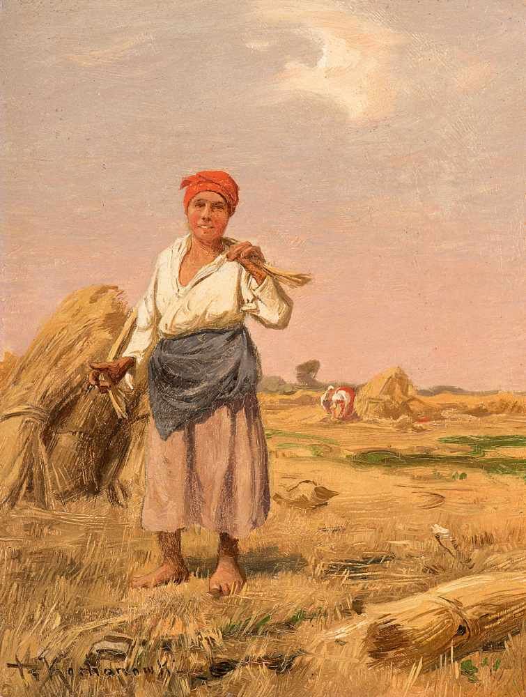 Lot 3482. Kochanowski, Roman 1857 Krakow – 1945 Freising. Hay harvest. Oil on panel. Signed lower left. H 26,5, W 20 cm. Reserve 1,000 euro. Kaupp. 10/20/18
