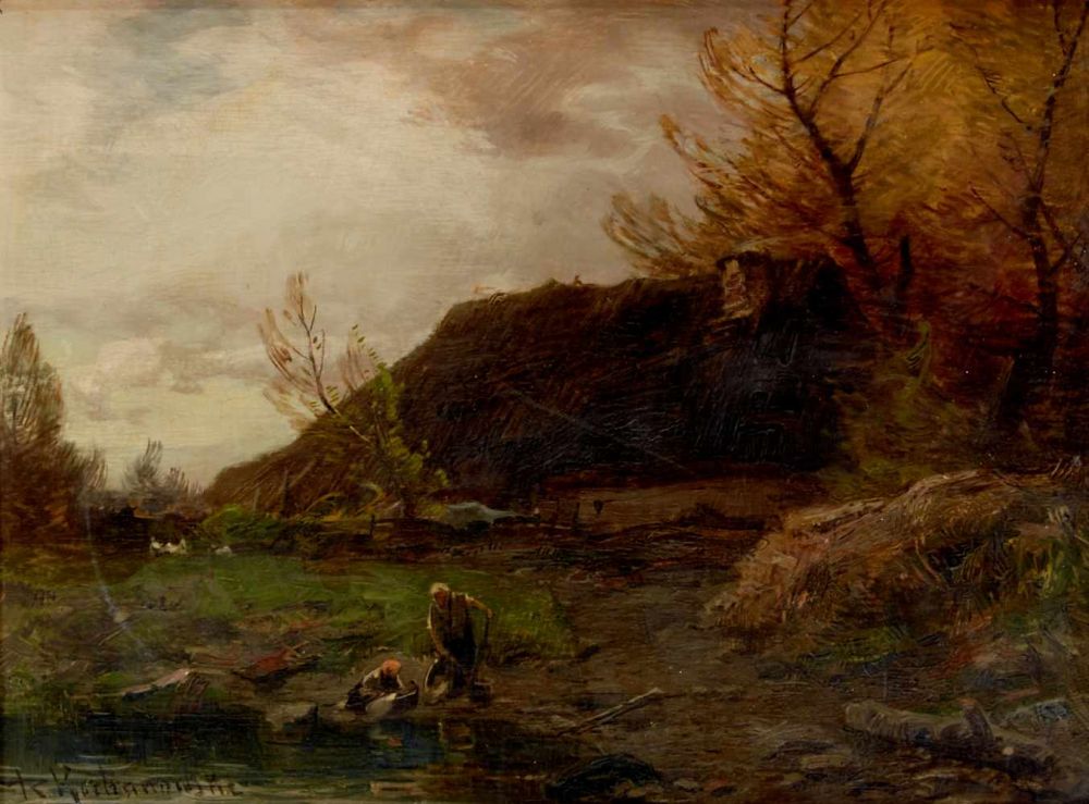 Inna praca Kochanowskiego to sporych wymiarów jesienny pejzaż nadrzeczny z chatą i dwiema kobietami zajętymi praniem(?) namalowany został wkrótce po 1900 roku. Praca cieszyła się sporym powodzeniem i sprzedano ją za 5,000 euro.