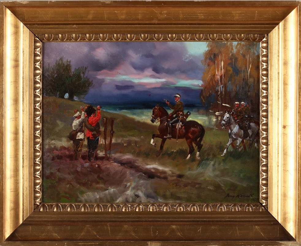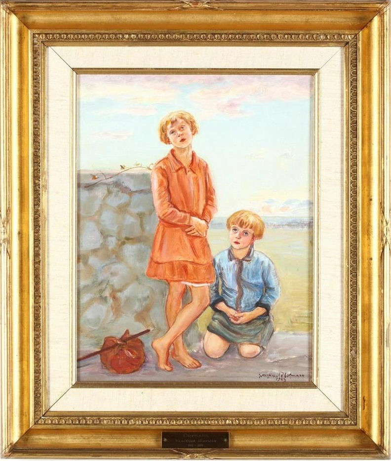 Lot 433. Wlastimil (Vlastimil) Hofmann (Polish, 1881-1970). Orphans, oil on board, signed and dated 1929 at lower right, presented in a later gilt frame with linen liner and gallery plaque. SS 13.5 x 10.5 in.; DOA 20.5 x 17 in. Old Warsaw Galleries, Inc., Alexandria, Virginia. Estimate $1,000 – $3,000. Leland.09/21/19