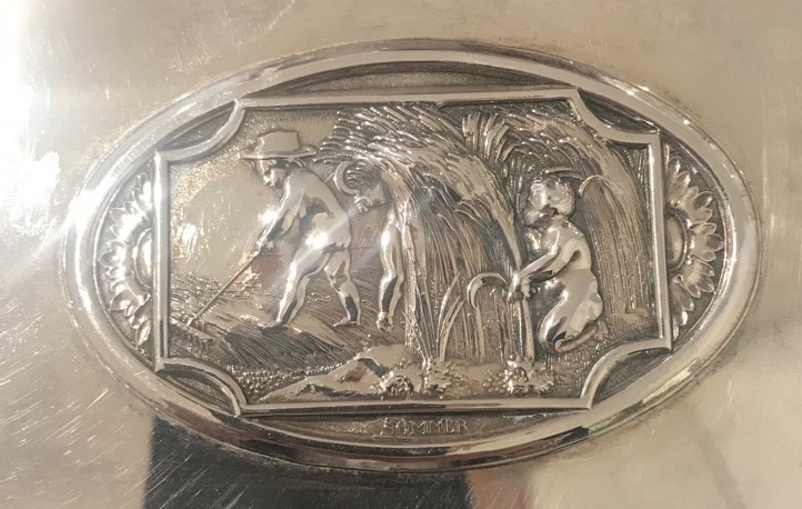 Cukiernica warszawska wykonana przez złotnika Jana Feliksa Szwarce, działającego w latach 1828 – 1838 (punce Schwarce, znak Syrenki, napis Warszawa oraz 12 jako znak jakości srebra 12-to łutowego). Ciekawe, że Kastern już kilka razy próbował sprzedać tę cukiernicę z dużo wyższyą ceną rezerwową. Niższa cena spowodowała większe zainteresowanie a wynik był taki jakiego oczekiwał dom aukcyjny. Bardzo dobry zakup, piękny medalion ręcznie robiony na pokrywie cukiernicy oraz obecny oryginalny kluczyk.