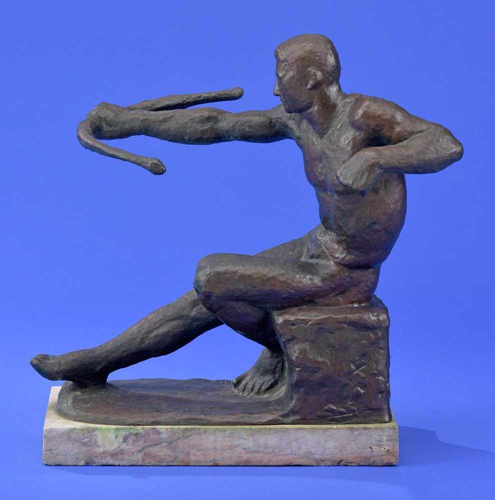 Lot 658. Wittig, Eduard 1879 Warschau – 1941 Warschau. Bogenschütze. Signiert. Bronze auf Marmorplinthe. H 34 cm, L 28,5 cm, T 13 cm. Reserve 500 euro. Dusseldorfer. 10/05/19