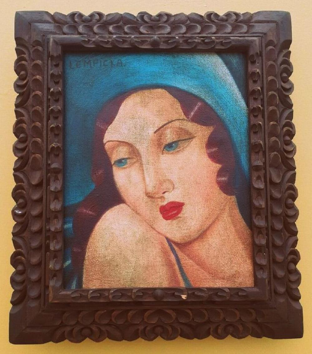 Bardzo dużo jest na rynku falsyfikatów prac Tamary Łempickiej. Są to zwykle marne rysunki i jeszcze marniejsze oleje. Dorobek malarki tej artystki był bogaty i różnorodny i sporo namalowała prac odbiegających od tych najbardziej poszukiwanych i drogich z lat 30-tych (powyżej miliona dolarów). Choć nie kupuję jej prac a jedynie je oglądam to zawsze staram się zwracać uwagę na proweniencję. Tak jest w przypadku tego portretu z aukcji w Hiszpanii. Mój pierwszy odruch nie był najlepszy. Jednak z tyłu płótna naklejonych jest kilka nalepek i przybitych jest kilka stempli wartych prześledzenia.