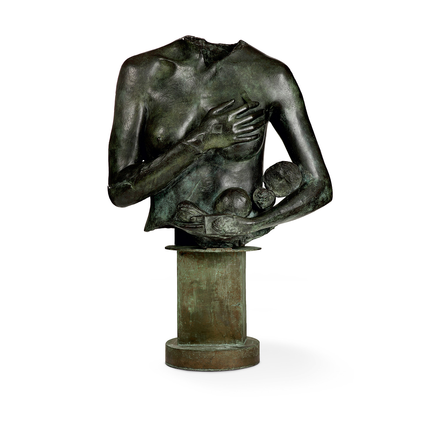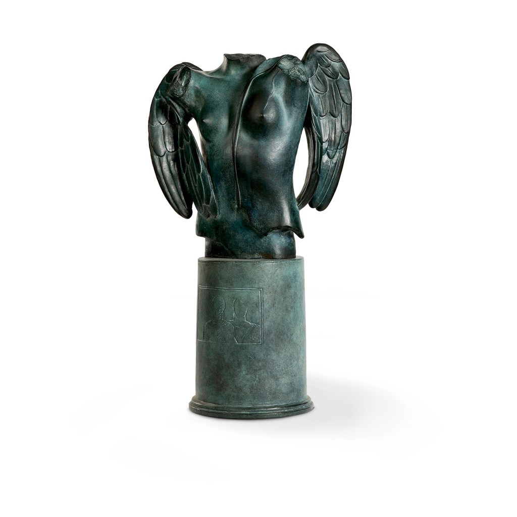Lot 21. IGOR MITORAJ (1944-2014). AUTUMNO, 1985. Bronze à patine brun vert, sur un socle en métal. Signé et numéroté 2/8. Fondeur Tesconi, Pietrasanta. Bronze with brown green patina, on a metal base; signed and numbered2/8. 120 x 80 x 40 cm avec le socle – 471/4 x 311/2 x 153/4 in. with base. PROVENANCE: Tornabuoni Arte, Crans-Montana, Acquis auprès de cette dernière par le propriétaire actuel. EXPOSITION: Rome, Museo Nazionale Castel Sant’ Angelo, Igor Mitoraj, Sculture, 28 mai-15 juillet 1985, décrit et reproduit pp. 62-63 du catalogue de l’exposition (un autre exemplaire). Estimate €80,000-120,000 Tajan. 11/27/19