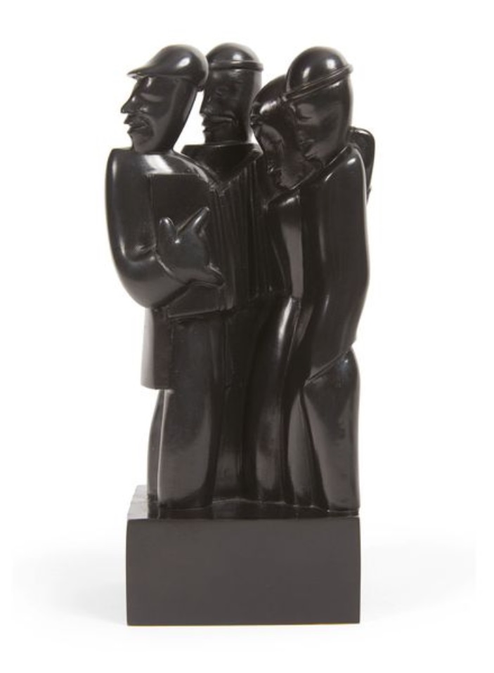 LAMBERT-RUCKI Jean (1888-1967). “L’ACCORDEONISTE ” – c.1925. Bronze à patine noire, signé, cachet JDV, cachet de fondeur Candide. Justificatif de tirage 7/8. Tirage original posthume limité à 8 exemplaires, plus 4 épreuves d’artiste, réalisé à partir du bois original, avec autorisation des héritiers du droit moral. Une attestation d’origine signée des filles de l’artiste sera remise à l’acquéreur.