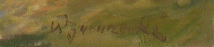 Niektórzy malarze sygnowali czasami swoje prace pseudonimami np. przyjęto, że Czesław Wasilewski oraz Zygmuntowicz to ten sam malarz. Sygnatura Zygmutowicza nosi czasami inicjał imienia ‘I’ a czasami ‘F’ (niektórzy sądzą, że od ‘Ignacy’a inni że to ‘Franciszek’ choć to jedynie przypuszczenia). W zasadzie jest pełna zgoda w polskiej literaturze antykwaryczno-aukcyjnej, że samouk Czesław Wasilewski oraz Zygmuntowicz to jedność. W oparciu o bardzo liczny porównawczy materiał malarski należy się zgodzić z tą opinią. Dla przykładu, pokazuję dwie prawie identyczne prace, choć różne rozmiarami, jedna sygnowana jako Cz. Wasilewski (powyżej) a druga (poniżej) jako Zygmuntowicz (tym razem bez inicjału imienia). Można stosunkowo łatwo odszukać i inne podobne pary prac Wasilewskiego i Zygmuntowicza.