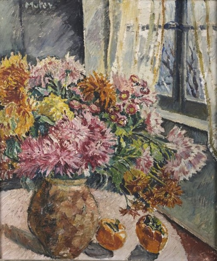 Lot 132. Mela MUTER (1876-1967). Window and dalhias bouquet. Oil on panel. Signed at the top left. 64 x 54 cm. Estimate 15,000 – 20,000 euro. Crait + Muller. 12/13/19