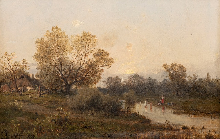 Lot 806. Zygmunt Sidorowicz (1846-1881), Paysage animé, huile sur panneau, signée et datée 1880, 26×39,5 cm. Estimate CHF 3,000 – 5,000. Piguet Hôtel des Ventes. 12/11/19. Sold CHF 4,500