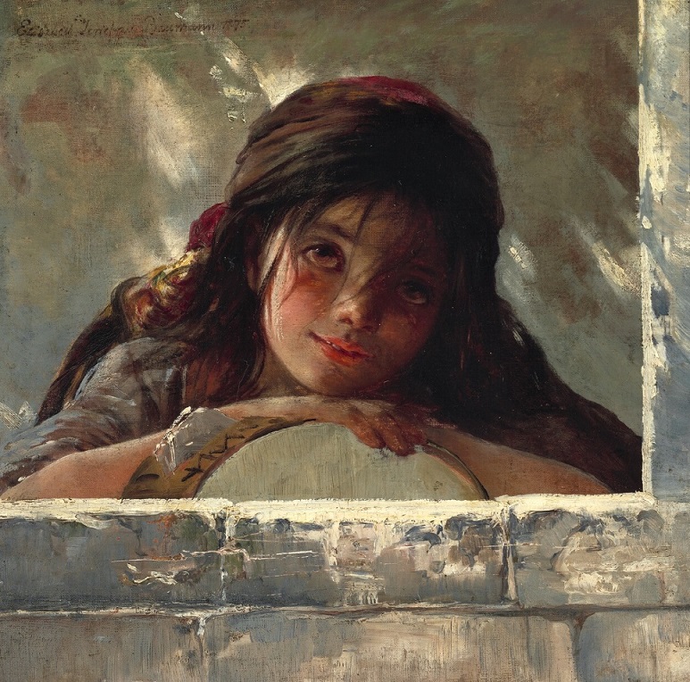 Bardzo przyzwoity olej na papierze Romana Kochanowskigo noszący wiekszość atrybutów tego malarza takich jak płaski krajobraz, zachmurzone niebo, domek za drzewami, rzeczka lub staw ze spokojną wodą, pochylone postacie kobiece. Nie zgodziłbym sie jedynie z opisem katalogowym, że jest to pejzaż jesienny. 1,400 euro to kradzież – widzę raczej 3,000 euro za ten obrazek. Kochanowski systematycznie pnie się w górę; 15 lat temu podobny obrazek kosztował 700 euro. Kolekcjonerzy coraz bardziej cenią sobie prace tego malarza a ich marzeniem jest jego duży obraz na płótnie, stimmung sprzed 1900 roku.