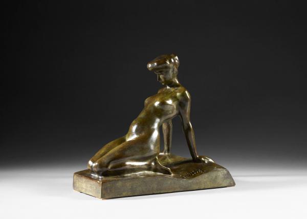 Lot 484. Edward WITTIG Varsovie, 1897 – 1941. Le modèle. Bronze à patine brun vert, signé ‘E. Wittig’ sur la base. Hauteur : 23,5 cm (9,25 in.). Estimate 800 – 1,200 euro. Artcurial. 02/04/20
