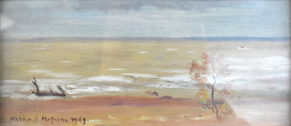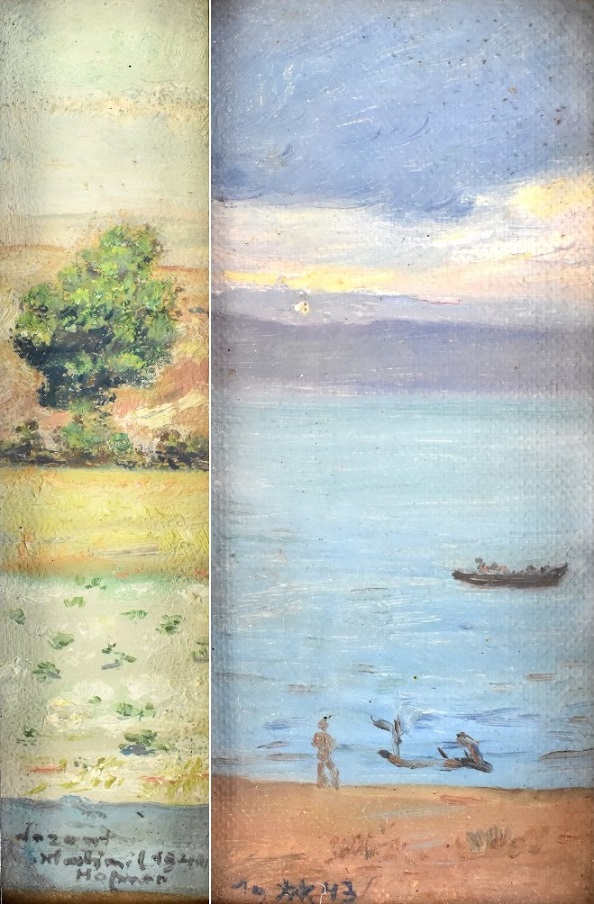 Trzy maleńkie obrazki namalowane przez Hofmana w okresie wojny. Artysta, jak widać, malował wtedy na czym się dało. Te obrazki to świadectwo tamtego trudnego okresu i nawet bym ich nie oceniał pod kątem artystycznym, bo chyba nie taki był cel jego tworzenia.