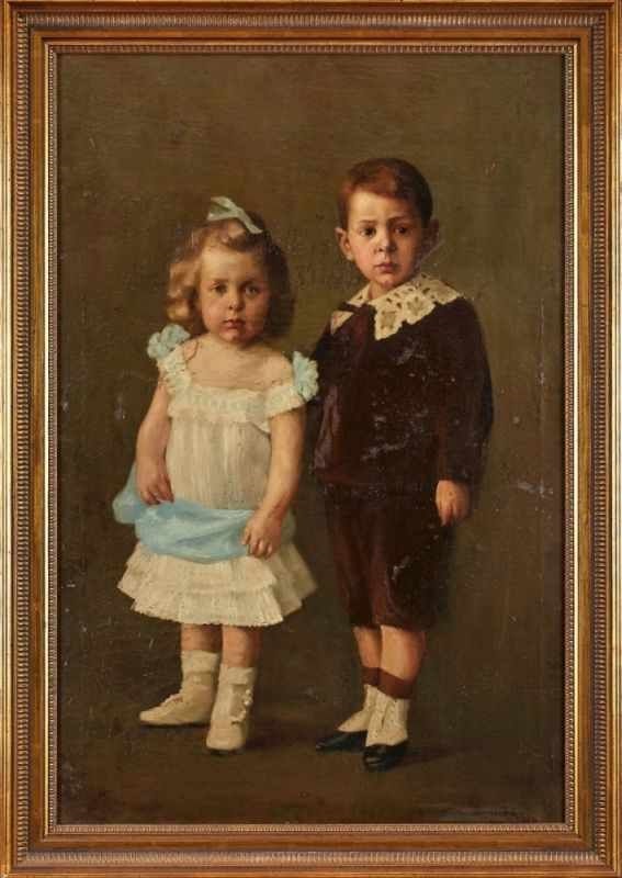 Lot 110. Gemälde wohl Adolf Buraczewski 1881 Zimodry – 1965 Warschau “Geschwisterbildnis” u. re. sign. Buraczewski Öl/Lwd. (doubl. u. restaur.), 109 x 73 cm. Estimate 1,000 euro. Kunst- und Auktionshaus Wilhelm M. Döbritz. 03/14/20