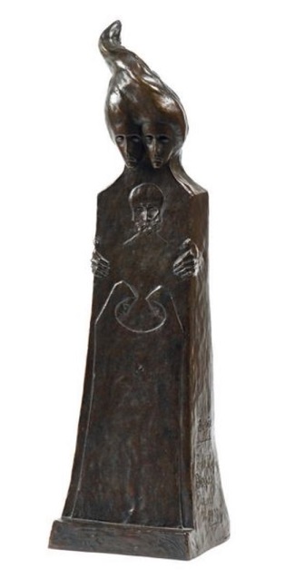 Lot 262. Boleslas BIEGAS (1877 1954). La vie. Bronze with brown patina, signed, located and dated Paris 1903, n°1/8. Cast iron Landowski/Blanchet. 60 x 18 x 13 cm. Exhibition: Trianon du Parc de Bagatelle in Paris 21 May – 30 August 1992. Reproduced under n°9 of the catalogue p.72. With its presentation base in wood and plexiglass, mounted with electricity. H.: 176 cm – W.: 38 cm – D.: 38 cm. Estimate 6,000 – 8,000 euro. Blanchet & Associes. 06/30/20. Sold 7,200 euro