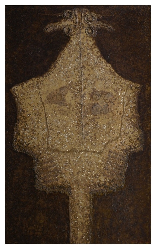 Lot 35. JAN LEBENSTEIN 1930 – 1999. AXIAL FIGURE #90, signedand dated 1960; inscribed figure axiale on the stretcher, acrylic on canvas. Canvas: 57¼ by 35¼ in. (137.8 x 89.5 cm). Framed: 62⅛ by 39⅝ in. (158.8 by 100.6 cm). Provenence: Richard Feigen Gallery, Chicago. Galerie Chalette, New York. Private Collection, New York. Parke-Bernet Galleries, New York, 12 April 1967, lot 36. The Collection of Joseph H. Hirshhorn. Hirshhorn Museum and Sculpture Garden (gift of Joseph H. Hirshhorn in 1972). Estimate $30,000 – 50,000. Sotheby’s. 04/02/20. Sold $35,000