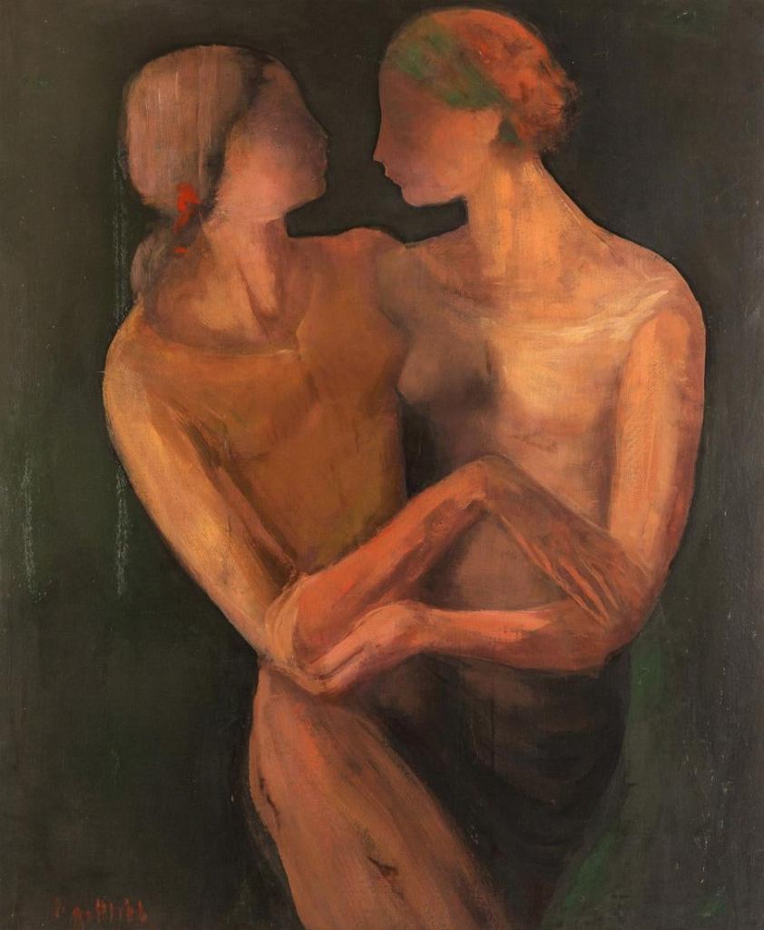 Lot 686. LEOPOLD GOTTLIEB (POLISH 1883-1934). Lovers, oil on canvas, 89.7 x 74.5 cm (35 1/4 x 29 3/8 in.), signed lower left. PROVENANCE Erich Cohn Collection. Thence by descent in the family to the present owner. Estimate $20,000 – 30,000. Staring $16,000. Shapiro. 03/22/20. Sold 47,500