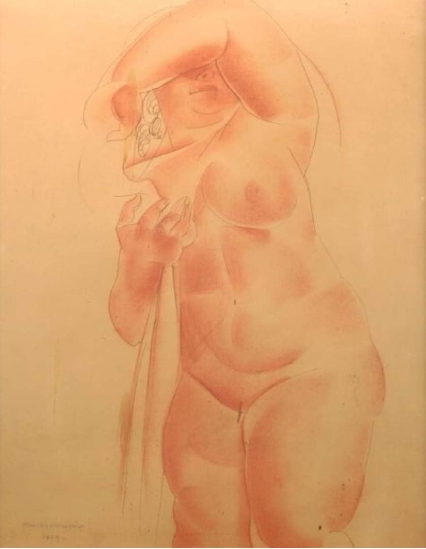 Lot 199. Helena KWIATKOWSKA (XXe siècle). Nue le bras levé. Plume, encre brune et sanguine signée et datée en bas à gauche 1929. D. : 55 × 43 cm (à vue). Estimate 100 – 150 euro. Ka-Mondo. 03/18/20