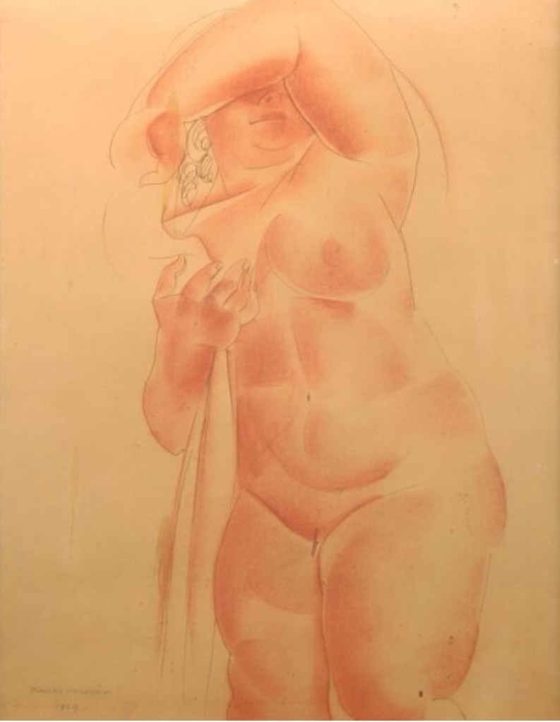 Sangwina Heleny Kwiatkowskiej o wyraźnych wpływach art deco. Artystka mocno niedoceniona a rysunek ten prawie za darmo można kupić.