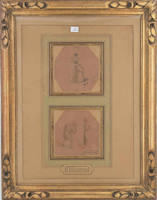 Lot 87. KWIATKOWSKI Teofil (1809-1891). Etudes de personnages. Deux dessins encadrés. Signés en bas à droite et datés 1850. 35 X 25,5. Estimation: 150 – 200 €. DUFRECHE. 03/12/20