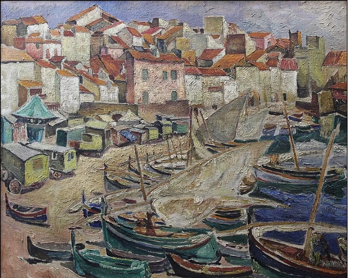 Lot 61. MUTER Marie Mela (1876-1967) : « La Plage de Collioure » et « Portrait de Monsieur D. Maublanc ». Huile sur toile double face, le portrait au verso est signé en haut à droite et titré en haut à gauche. 65 x 81 cm. Estimation: 20 000 – 30 000 €. Eric Caudron. 03/11/20