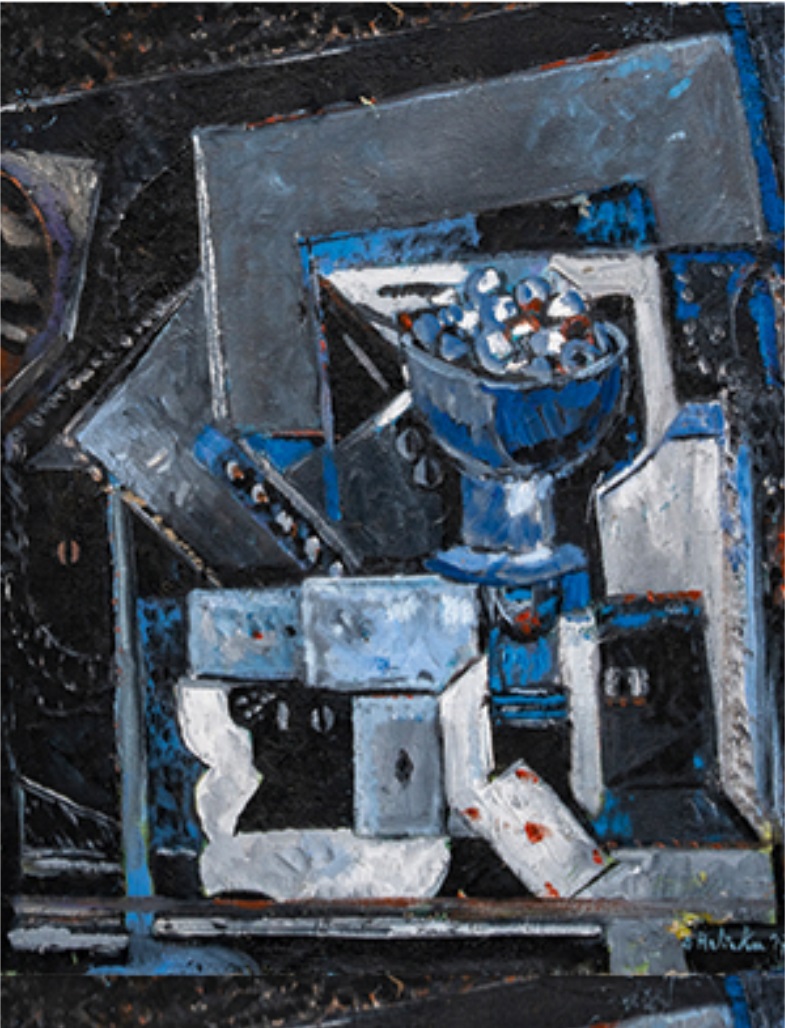 Kubistyczna praca Alicji Halickiej z roku 1927? Wg dostępnych informacji, mąż artystki Ludwik Markus (Louis Marcoussis) w trosce o własną sławę ‘przekonał’ żonę około 1920 roku do porzucenia kubizmu. Zatem, albo czegoś nie wiemy do końca albo może datowanie na pracy zostało błędnie odczytane. Jest jeszcze inna brutalna opcja. Więcej informacji o pochodzeniu tego oleju jest potrzebne.