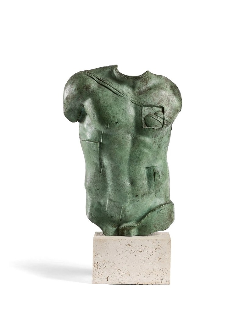 Lot 133. Igor Mitoraj (1944-2014). Torso con C, incised with the artist’s signature and number ‘4/8 I.MITORAJ’ and stamped with foundry mark (along the reverse lower edge), bronze, on a bronze base sculpture: 42.5 x 33 x 15.5cm, overall: 64 x 33 x 15.5cm. Executed in 1986, this work is number four from an edition of eight. Die Galerie, Frankfurt. Acquired from the above by the present owner in 1998. Estimate 20,000 – 30,000 euro. Christie’s. 06/18/20