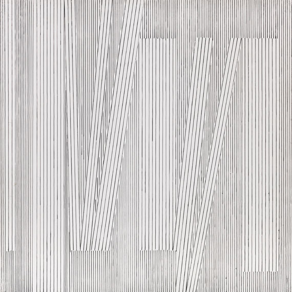 Lot 120002226. Henryk Stazewski. Nr. 8. 1974. 1974. Öl auf Hartfaserplatte. Verso signiert und datiert sowie schwer leserlich gestempelt und bezeichnet. 60 x 60 x 3 cm (23,6 x 23,6 x 1,1 in).Estimate: € 10,000 – 12,000. Ketterer. 07/17/20