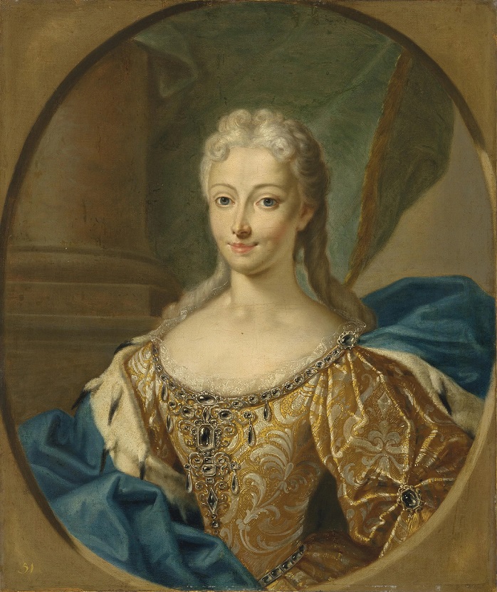 Portret Marii Klementyny Sobieskiej, wnuczki Jana III Sobieskiego a córki jego syna, niedoszłego króla Jakuba Sobieskiego. Mariia Klementyna, poprzez więzy krwi, była osobą niezwykle ustosunkowaną z panującymi wówczas w Europie. Wyszła za mąż za księcia Jakuba Stewarda, pretendenta do tronu Anglii, syna obalonego króla Anglii Jakuba II Stewarda i miała z nim dwóch synów. Zmarła młodo w depresji i dewocji. Wiele znanych jest jej portretów. Ten jest wyjątkowo piękny. A może by tak władze polskie do Wilanowa kupiły?