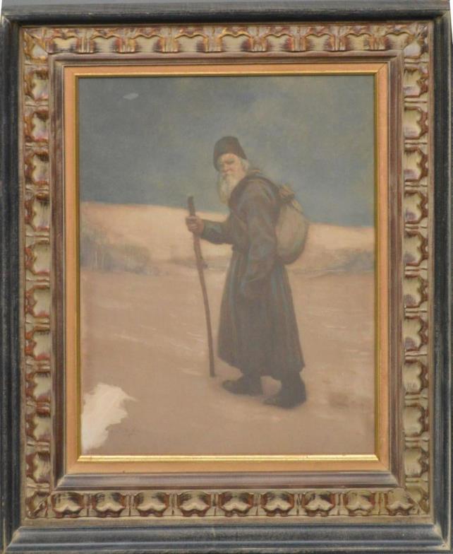 Jan Styka (1858 – 1925) Posted by 72blog104 0 Jan Styka. Winter Travellery Budzący zaufanie lecz słabiutki pastel Jana Styki. Estymacja wzięta z sufitu. Lot 371. Jan Styka signed lower left pastel on artist board – “Winter Travellery” 20 x 16 inches. Estimate £1,000 – £1,250. Kristen Leigh Auction. 09/25/20