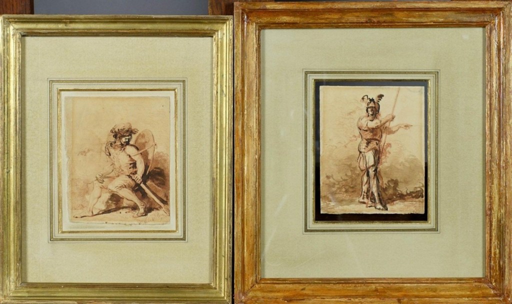 Lot 81. Jean Pierre Norblin de la Gourdaine (1745 1830) (attribué à). Soldier to the Ancient. Drawing, sanguine, black ink and grey wash on pencil line. Two pendants, one on both sides. Dimensions: 14 x 11 cm. Estimate 300 – 500 euro. Galerie Moderne. 09/07/20