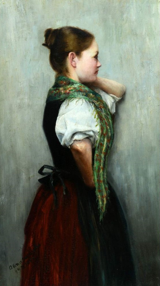 Lot 2204. Kraszewska, Otolia Gräfin, zugeschr., 1859 Shitomir/Wolhynien – 1938 München. Öl/Lwd, 58 x 34 cm, ” Profilbildnis einer jungen Frau in Tracht “, u.l. bez., dat. “24.IV.1897”, Lit.: Thieme-Becker, Müller-Singer, Bruckmann M, Busse, Saur. Starting 300 euro. Allgäuer Auktionshaus. 11/07/20. Sold 550 euro