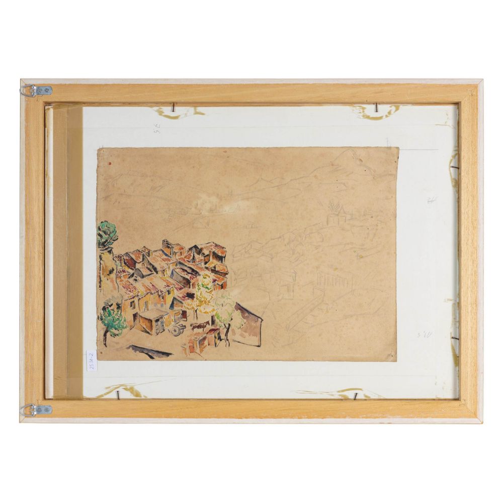 Lot 170. Marie Mela Muter (1876 Warschau – 1967 Paris). Urbane Szene, Aquarell auf Bütten, 51 cm x 36,5 cm Blattmaß, signiert, rückseitig mit Landschaftsstudie und Vorzeichnung, Papier stockfleckig, Ecken mit Einstichslöchern, am Rand Zuschnittsspuren. Reserve 800 euro. Auktionshaus an der Ruhr. 11/14/20