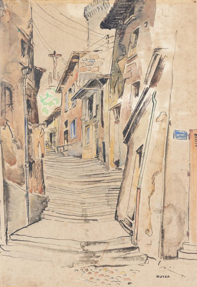 Lot 17. Alice HALICKA (Krakow 1894 – Paris 1975). The staircase of the maquis. Made in 1923. Watercolour on paper, 38 x 26 cm. Signed, located and dated below “the staircase of the maquis March 1923 Halicka. Estimate 800 – 1,200 euro. Millon. 11/10/20