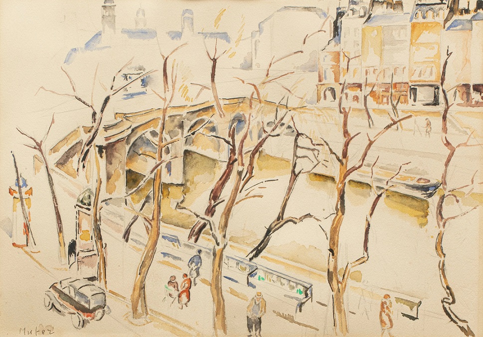 Lot 24. Mela MUTER (Warsaw 1886 – Paris 1967). The quays of Paris. Circa 1920. Watercolour on paper, 35 x 49 cm. Signed lower left “Muter”. Estimate 4,000 – 6,000 euro. Millon. 11/10/20