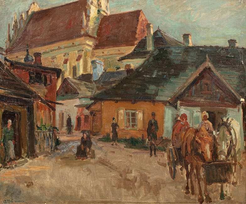 Lot 43. Abraham NEUMANN (Sierpc 1873- Krakow 1942). Street scene in Kazimierz, Krakow. Oil on canvas mounted on cardboard, 48 x 58 cm. Signed lower left “A Neuman”. Estimate 1,500 – 2,000 euro. Milon. 11/04/20. Sold 13,000 euro.
