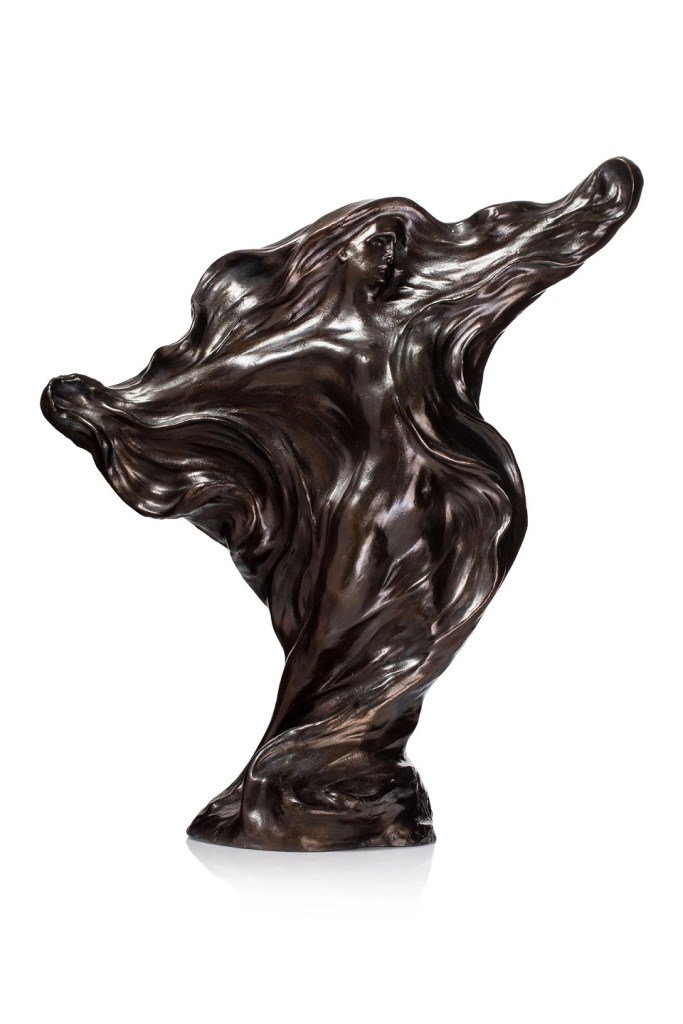 Lot 142. Boleslas BIEGAS (1877-1954) “La Femme Flame“. Model created in 1907. Bronze sculpture with black patina. Posthumous edition cast iron by Coubertin. Signed and numbered “EA 5/8”. 50 x 48 x 18 cm. A certificate from Mr. Jean-Pierre Camard for the original plaster will be given to the purchaser. Bibliography: Catalogue of the retrospective exhibition of the Trianon de Bagatelle, May 1992, “Biegas in his workshop, 1906 – 1907”, plaster model reproduced page 253. Estimate 5,000 – 7,000 euro. Millon. 12/01/20