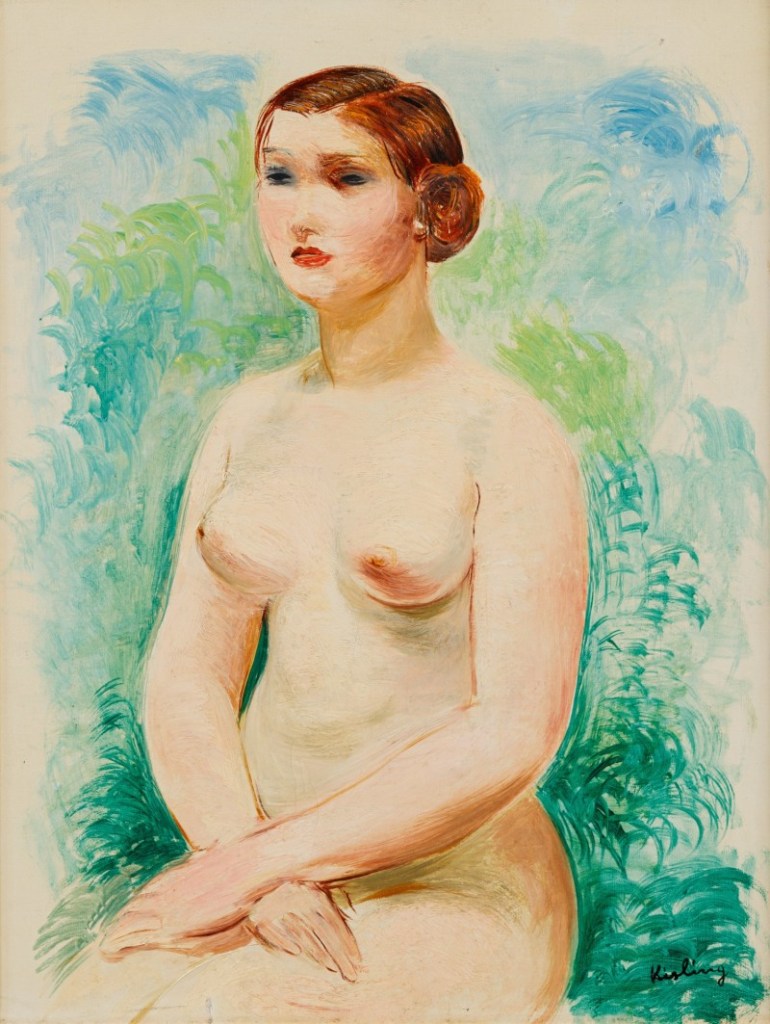 Lot 53. Moïse Kisling 1891 – 1953. Nu assis, signed Kisling (lower right), oil on canvas, 41,5 x 33,5cm; 16⅜ x 13⅛ in. Painted in 1938. This work will be included in the forthcoming Tome IV et Additifs aux Tomes I, II et III of the Moïse Kisling catalogue raisonné currently being prepared by Marc Ottavi. Cette œuvre sera incluse dans le Tome IV et Additifs aux Tomes I, II et III du Catalogue Raisonné de l’œuvre de Moïse Kisling actuellement en cours de préparation par Marc Ottavi. Provenance: Private collection, United States; Acquired by the present owner circa 1992. Literature: Jean Kisling & Jean Dutourd, Kisling 1891-1953, Paris, 1995, vol. III, no. 96, illustrated p. 385, Jean Kisling & Jean Dutourd, Kisling 1891-1953, Paris, 1995, vol. III, no. 96, reproduit p. 385. Estimate 20,000 – 30,000 euro. Sotheby’s. 12/10/20. Sold 40,320 euro