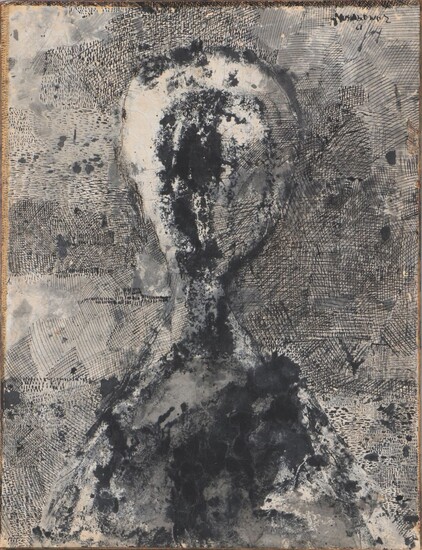 Lot 987. HENRYK MUSIALOWICZ (1914 Gniezno – 2015 Warschau). Federzeichnung auf Papier (auf Pappe montiert), ”Portraet Imaginaire” (1961/64), oben rechts signiert ”HMusialowicz” und datiert, verso handschriftlich (wohl vom Kuenstler) mit Adresse versehen und betitelt, ca. 67,5×48,5cm, ungerahmt (auf Platte montiert), berieben, am rechten Rand bestossen. Starting 450 euro. Rotherbaum. 12/12/20. (20130019)