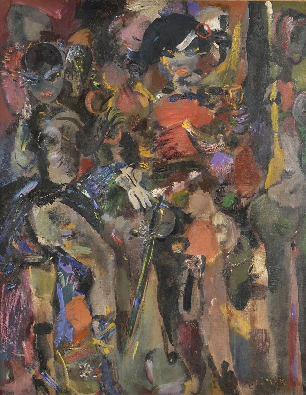 Lot 208. Ludwig KLIMEK (1912-1992). Dolce Vita. Huile sur toile. Signée en bas à droite. Titrée au dos. 93 x 73 cm. Étiquette Galerie Bert au dos. Estimation 400 – 600 €. Krait + Muller. 01/26/21