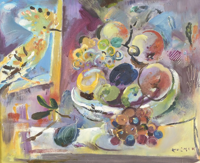 Lot 204. Ludwig KLIMEK (1912-1992). L’oiseau et la coupe de fruits. Huile sur toile. Signée en bas à droite. 50 x 61 cm. Estimation 300 – 500 €. Krait + Muller. 01/26/21