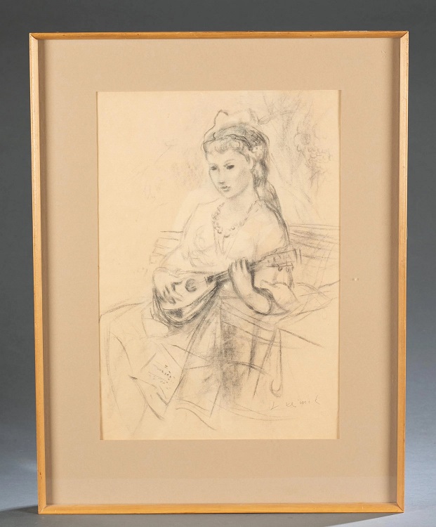 Lot 258. Klimek, Ludwig (Polish, 1912-1992). Portrait of a girl with a mandolin. 20th century. Charcoal on paper. Signed l.r. Sight: 16 1/2″ x 11 1/2″. Frame: 23″ x 17 3/4″. Condition: Not examined outside of frame. Provenance: From the estate of a private collector, Potomac, Maryland. Estimate $100 – 200. Quinn’s Auction Galleries. 01/30/21
