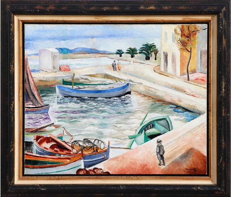 Namalowany w 1919 roku przez Mojżesza Kislinga obraz przedstawiający fragment portu nadmorskiego miasteczka Sanary-sur-Mer w Prowansji. Nieskazitelna proweniencja pracy ze zrozumiałą śmiałą wyceną.