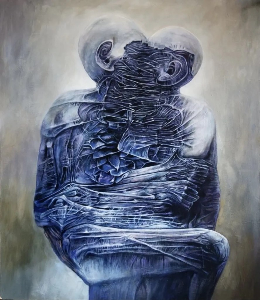 Lot 10. Zdzislaw Beksinsk Polish oil painting on board. Signed and dated on back. Image size 34 in by 30 in. Estimate $10,000 – 20,000. Livingstone Auction. 03/20/21