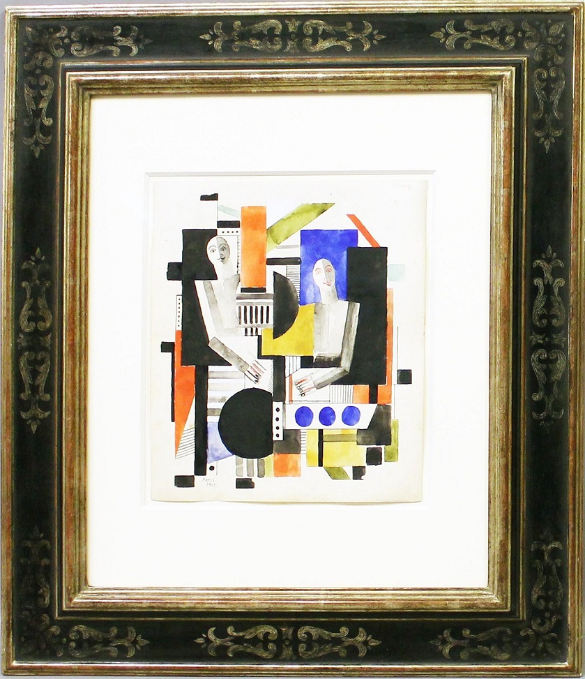 Lot 3628. Wlodarski, Marek eigentlich Henryk Streng (1903 Lemberg – Warschau 1960). Kubistische Darstellung mit zwei Figuren. Gouache/Papier, re. o. bez., li. u. bez. Paris und dat. 1925. 34.5x 29,5 cm. PP.. aufwendige Galerie-Rahmung im Renaissancestil. Prov.: Dr. Guy Roland, Paris. Privatsammlung Paris. Im Jahr 1925 lernt Wlodarski Fernand Léger in Paris kennen, beide verband eine Freundschaft und prägte die künstlerische Entwicklung Wlodarskis. Estimate 10,800 – 12,200 euro. Dannenberg. 03/27/21