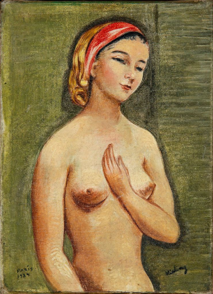 LOT 31968. Moïse Kisling (1891-1953), Jeune Fille Nue. Oil on canvas, 1934. Signed (lower right) and inscribed Paris 1934 (lower left). 22 x 16 cm. Provenance: Estate of Elena Parys Feldberg. Literature : Kisling, Jean, Troyat, Henri; Kisling vol II; 1982; num. 72 in the book . Charensol, Georges; Moise Kisling: Editions de Clermont; 1948; num 64 in the book. Exhibitions :Guy Stein Gallery, 1937, Paris, lot 18. Estimate $20,000 – 30,000. Hammersite. 03/15/21