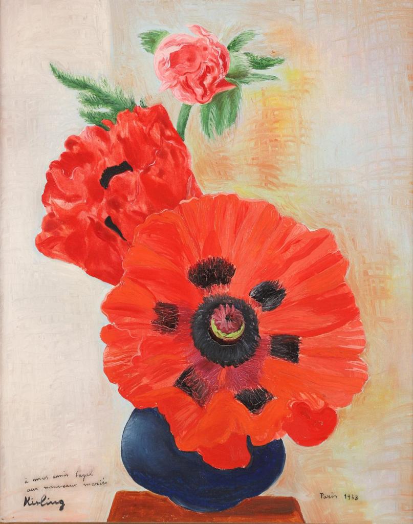 Lot 5945741. Moise Kisling (French/Polish, 1891–1953), Still Life (Poppies), Oil on Canvas, 1938. Provenance: Sotheby’s New York: Wednesday, November 13, 1996, Impressionist & Modern Art, Part II, Lot 389, realized $37,375 incl. premium. 16 1/4 x 13 1/4 inches; frame: 24 1/4 x 21 inches. Estimate $50,000-70,000. Opening $40,000. iGavel. 03/16/21