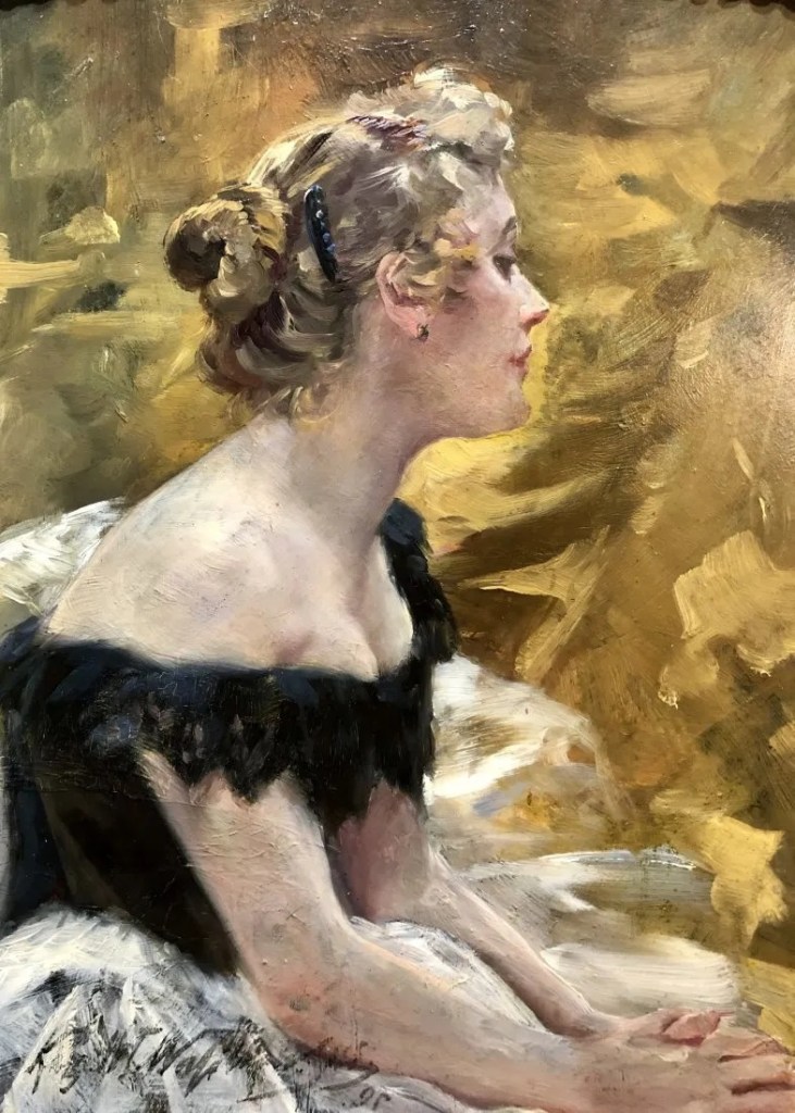 Lot 98. Painting of ballerina by Kazimierz Wladyslaw Wasilkowski (Polish 19th/20th century). Frame: 17 1/4″ x 14.5″. Painting: 12″ x 9 1/4″. Estimate $200 – 300. David Killen Gallery. 03/14/21
