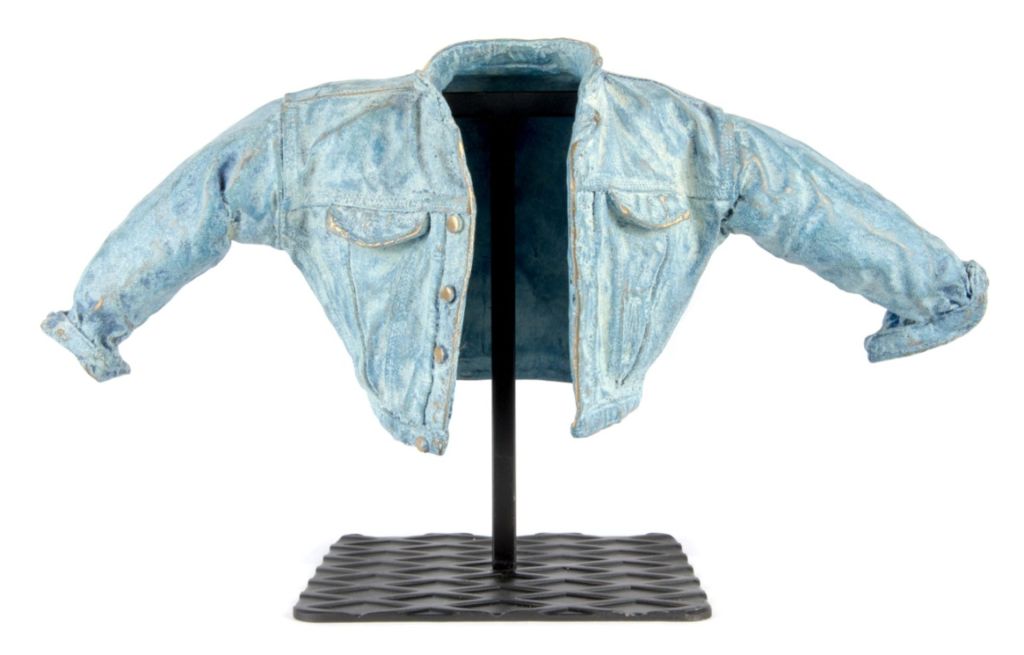 Lot 216. Tomasz KAWIAK dit “TOMEK” (Né 1943). Jean’s Jacket, 1997 Sculpture en bronze à patine bleue nuancée. Repose sur une base support en métal noirci. Signée au dos, numérotée 8/8 avec cachet du fondeur Carli, Torino. Dimensions : (H) 23 x (L) 40,5 cm Plasticien, peintre et sculpteur polonais, Tomasz Kawiak, dit “Tomek”, est auteur de nombreux gestes artistiques: troc-art échanges, briquetages du monde, système métrique et son rétrécissement, dessins circonstanciels… En 1970 il réalise “La Douleur de Tomek”, la première action écologique et sociale en Pologne communiste. Créateur-inventeur de la sculpture vestimentaire utilisant le “Jeans” et les agrandissements des “poches”, réalisée en bronze patiné et marbre, représentant des symboles de notre époque. Il réalise depuis 1997 son projet de la “Longue Marche du Jean”, prévu initialement en Chine et par la suite présenté dans le monde. Depuis 1970, il expose dans le monde entier, et figure dans de nombreuses collections publiques et privées en Europe, aux États-Unis, en Amérique Latine, au Japon, en Chine, en Corée et en Australie. Jean’s Jacket, nuanced blue patina bronze sculpture signed on the back, numbered 8/8 with foundry stamp Carli, Torino. Estimate 1,200 – 1,500 euro. Academia Fine Art. 04/07/21